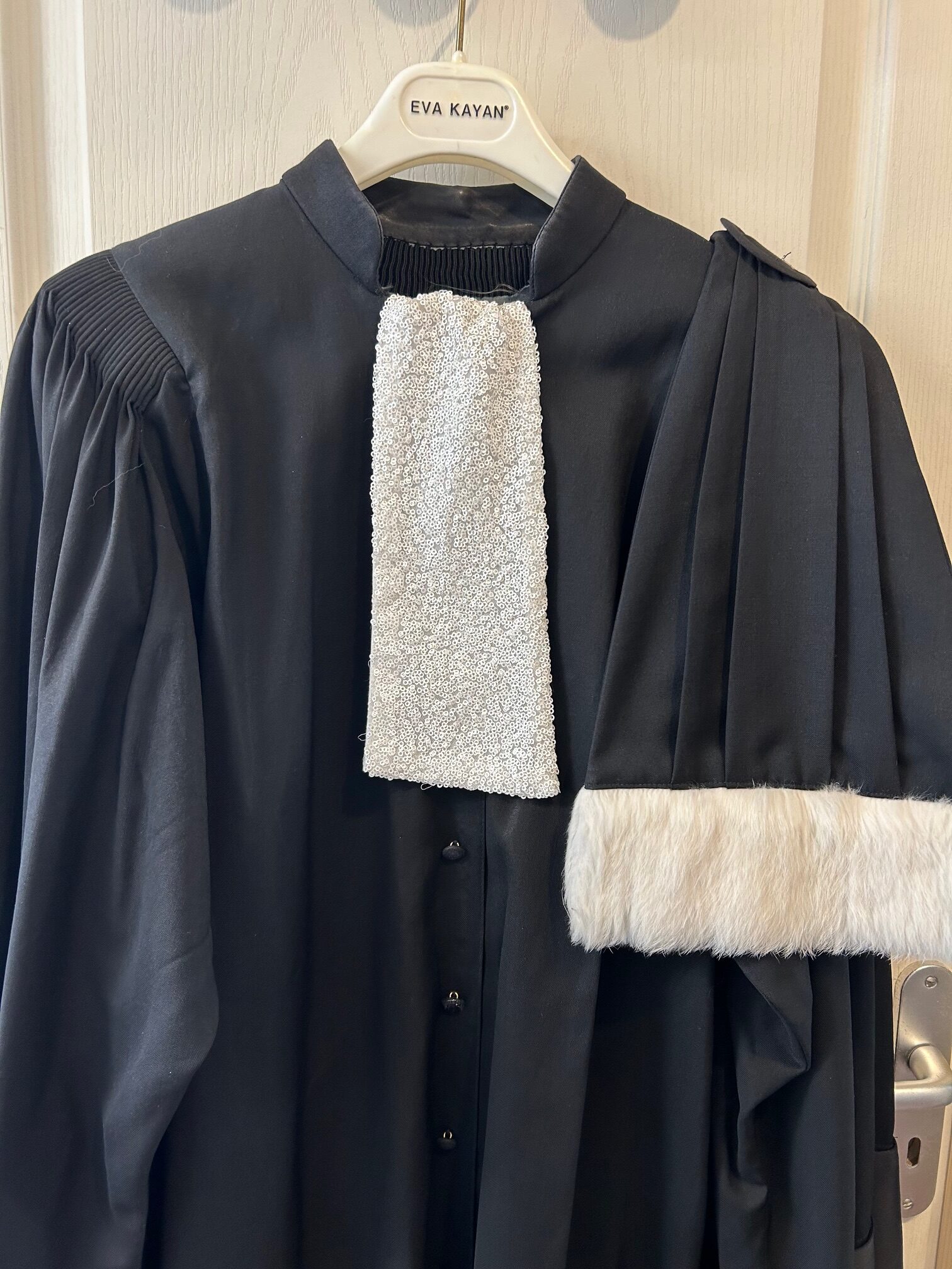 Changement de doublure usée, ainsi que réparation poche et cravatte de robe d'avocat.